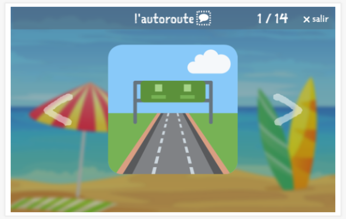 Tema Vacaciones es una de las 43 categorías de la aplicación Aprender francés con Emma. Los niños aumentan de una forma fácil y divertida su vocabulario con los juegos. Los padres, maestros y supervisores pueden usar la aplicación para tomar exámenes para determinar el nivel y hacer un seguimiento del progreso.